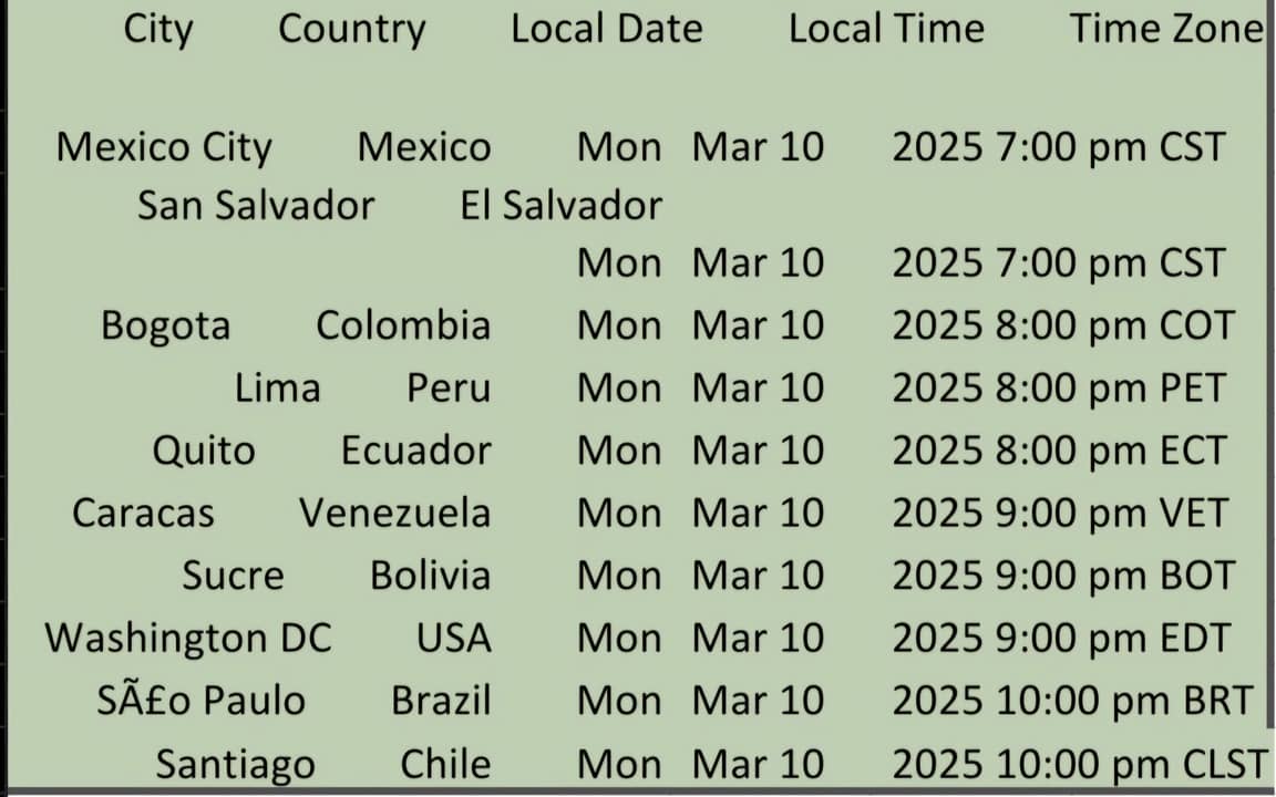 A time table for joining the meeting for LAUCC2027 chat tonight. Link to be posted later.